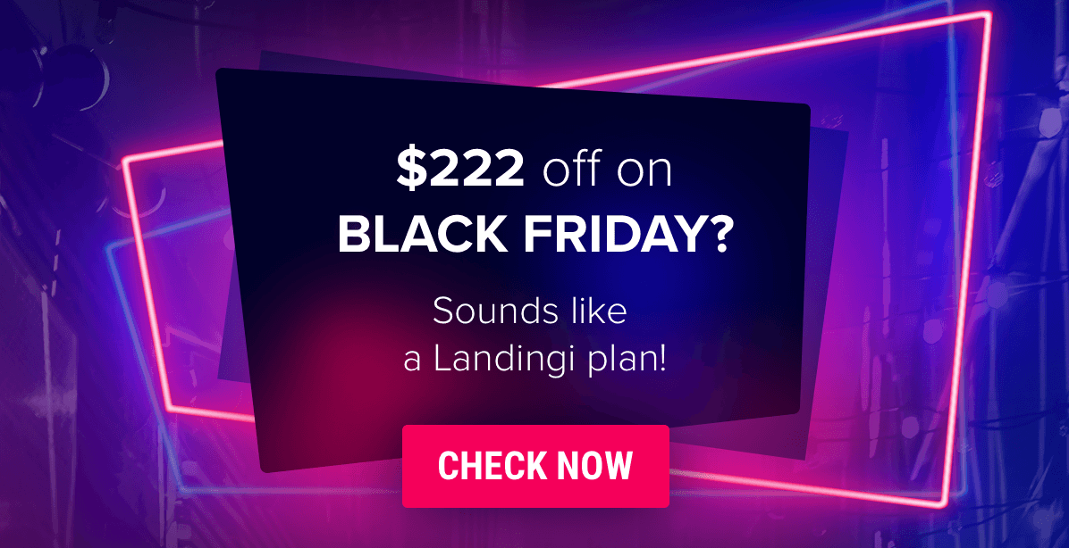 Our Black Friday landing page was created in Landingi with no additional coding. Try and design one yourself!