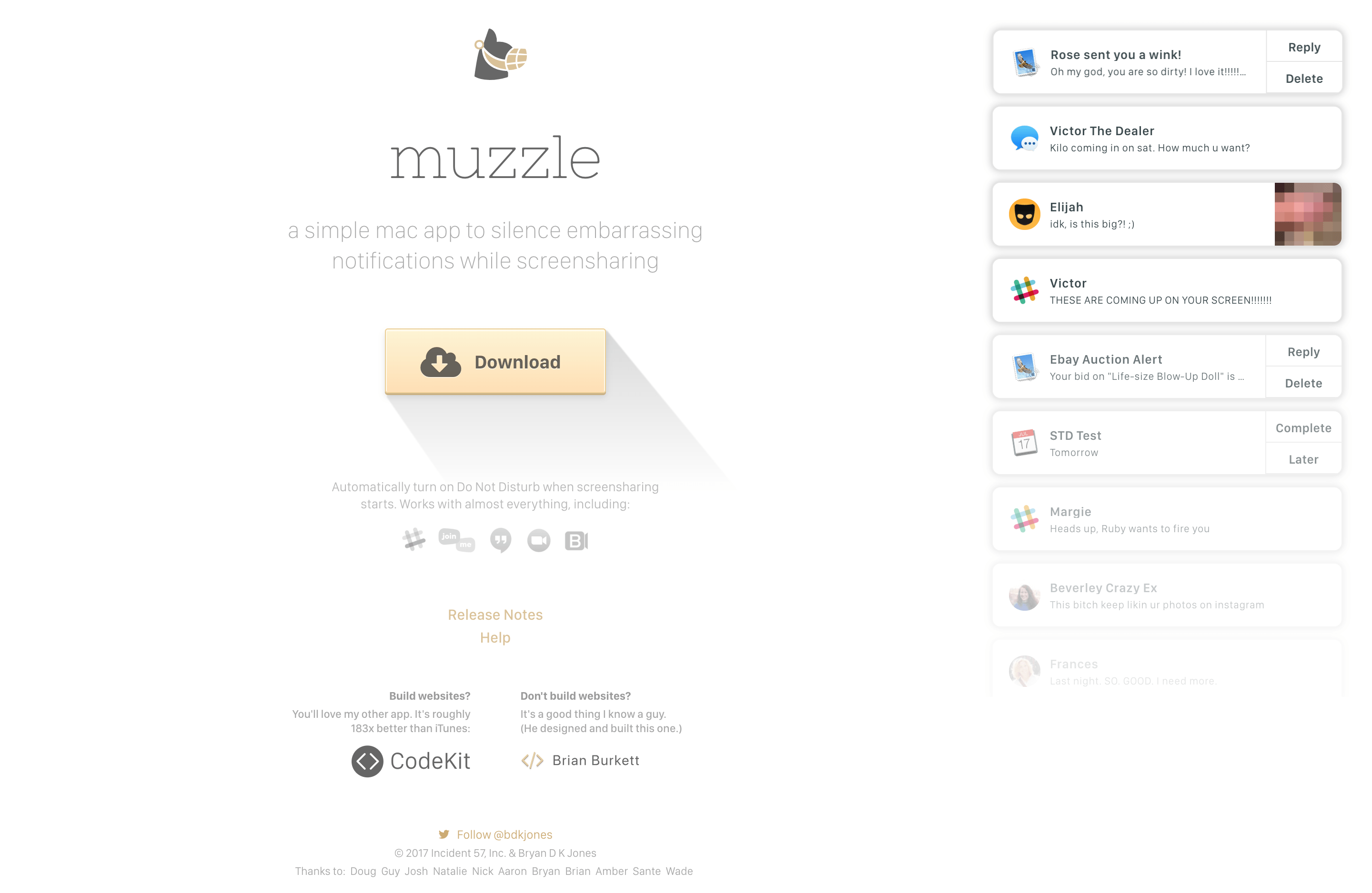 Muzzle is a clever app with a download landing page that demonstrates this. Due to the interactive nature of their visuals, they chose to pare down on other elements to make the page less distracting.