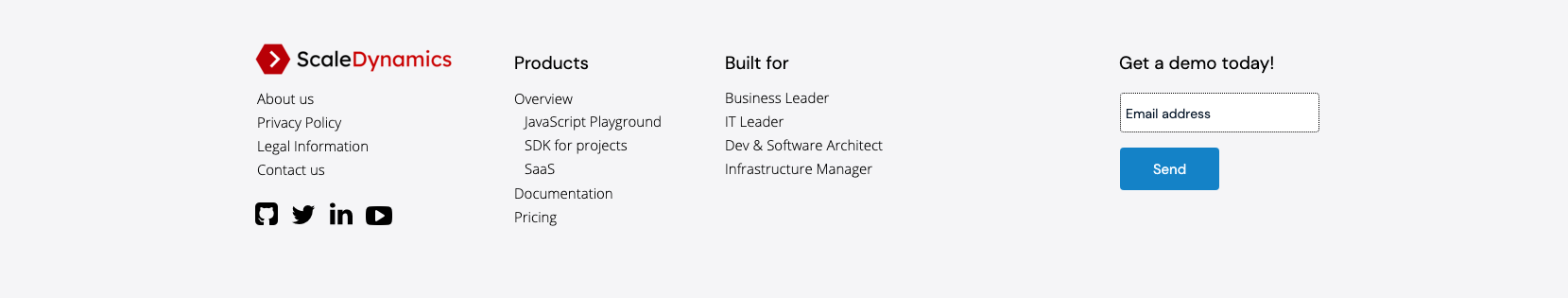 - Footer – if you want to speed up your work and make sure your footer is consistent on each landing page you create (like the one below).