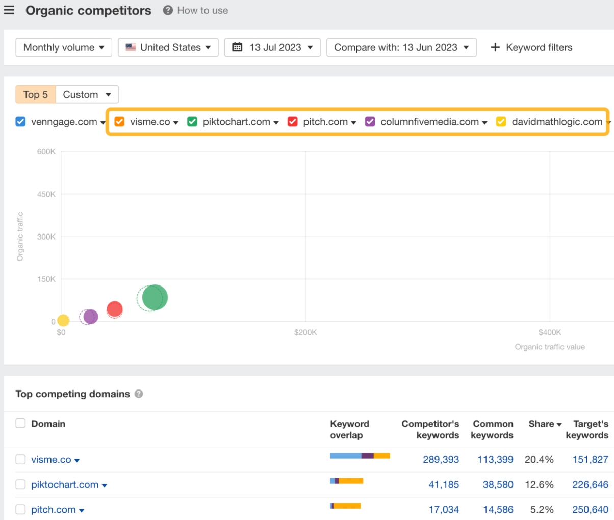 If you’d like to go more in-depth, you may use a bunch of tools for advanced SEO competition analysis, like Ahrefs, Semrush, or SEO PowerSuite. For instance, with Ahrefs, you’ll be able to discover your SEO competitors, investigate how they’re getting traffic, identify and cover content gaps, see their traffic main sources, and much more.