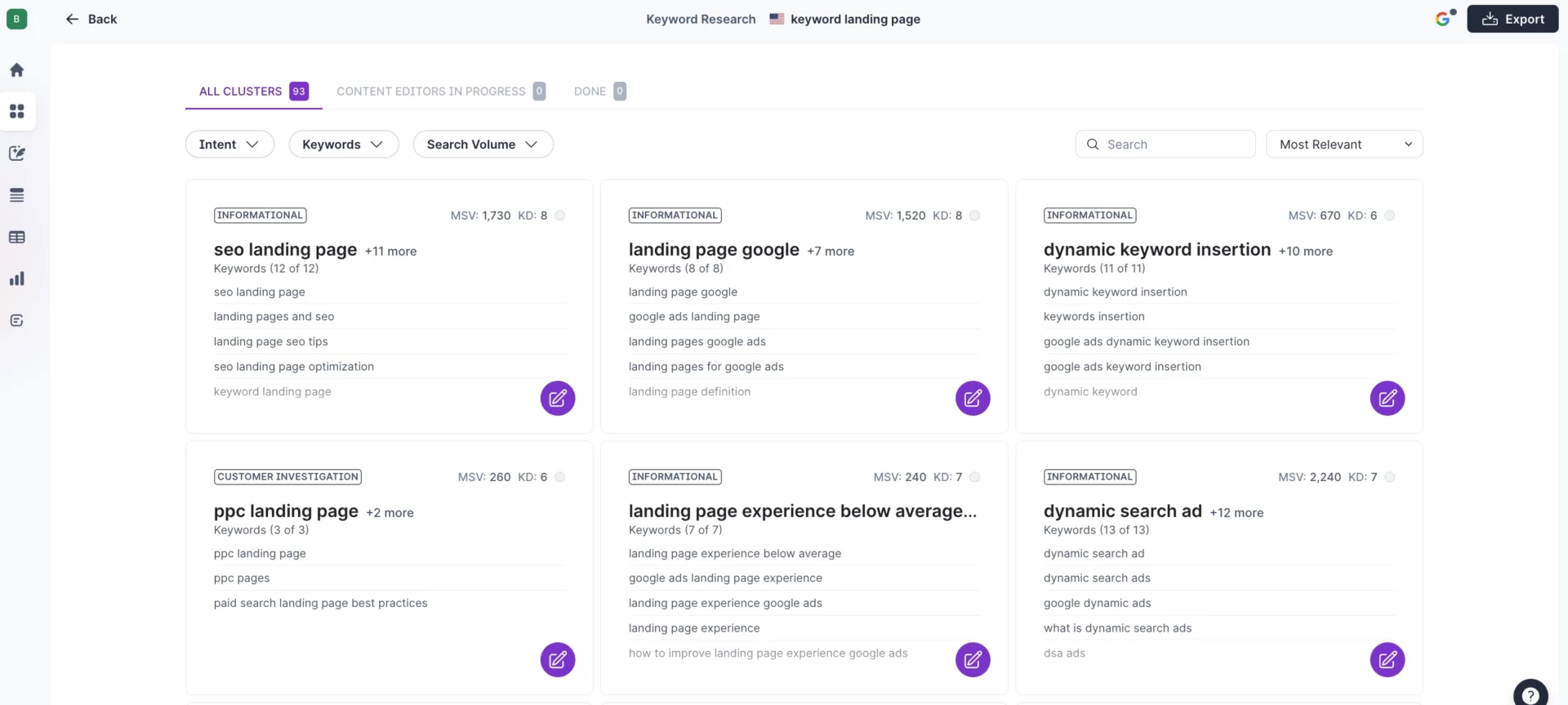 This is how the idea of search intent works (in a nutshell)! Apps like Surfer do the work for you: they provide you with a variety of potential keywords to rank for with determining intent for each of them.