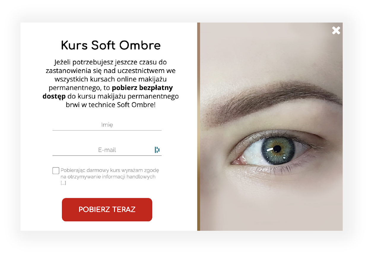 To make courses offer even more attractive, Ms. Żywiałkowska prepared a training with Soft Ombre technique course which was available free of charge in return for signing up on a landing page. Thanks to that, it was possible to get a group of the ones interested in permanent makeup knowledge. Moreover, further emailing campaigns enabled to continuously engage the group and familiarize them with other courses in an online platform.