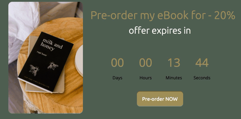 One efficient technique is to ignite interest with a countdown timer. It counts down in seconds, minutes, hours, and days to any date you set. In potential customers’ eyes, it shifts the launch moment further in time, so if they consider your product or service valuable, their hunger for it will steadily intensify. You may then feed their needs by offering a pre-order option. It’s always good to combine it with a special discount.