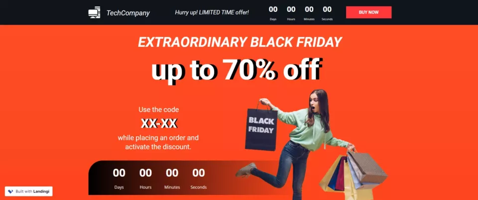 Build a page just like this one with Landingi’s Black Friday Sale template.