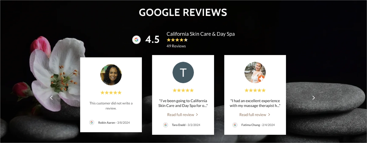 Es ist eine gute Praxis, Bewertungen von beliebten Plattformen, auf denen Ihr Unternehmen vertreten ist, einzubinden, insbesondere wenn Sie Schönheitsdienstleistungen, Kosmetikabonnements usw. anbieten. Der Aufbau von Vertrauen bei neuen Besuchern ist einer der einflussreichsten Faktoren bei der Schaffung eines allgemeinen Markenimages.