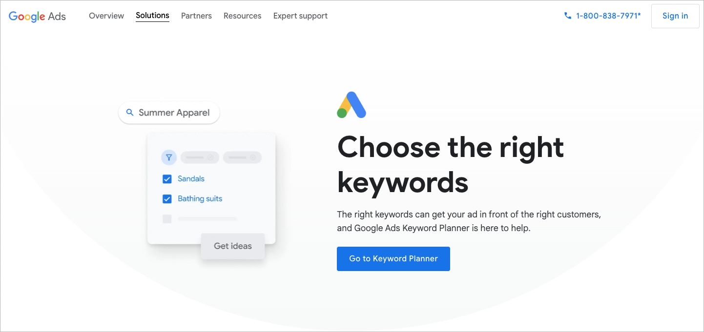 El Planificador de palabras clave de Google ayuda a los anunciantes a calcular el volumen de búsquedas, la relevancia de las palabras clave y los rangos de puja. Resulta especialmente útil durante la fase de planificación para prever el alcance de la campaña y las necesidades presupuestarias.
