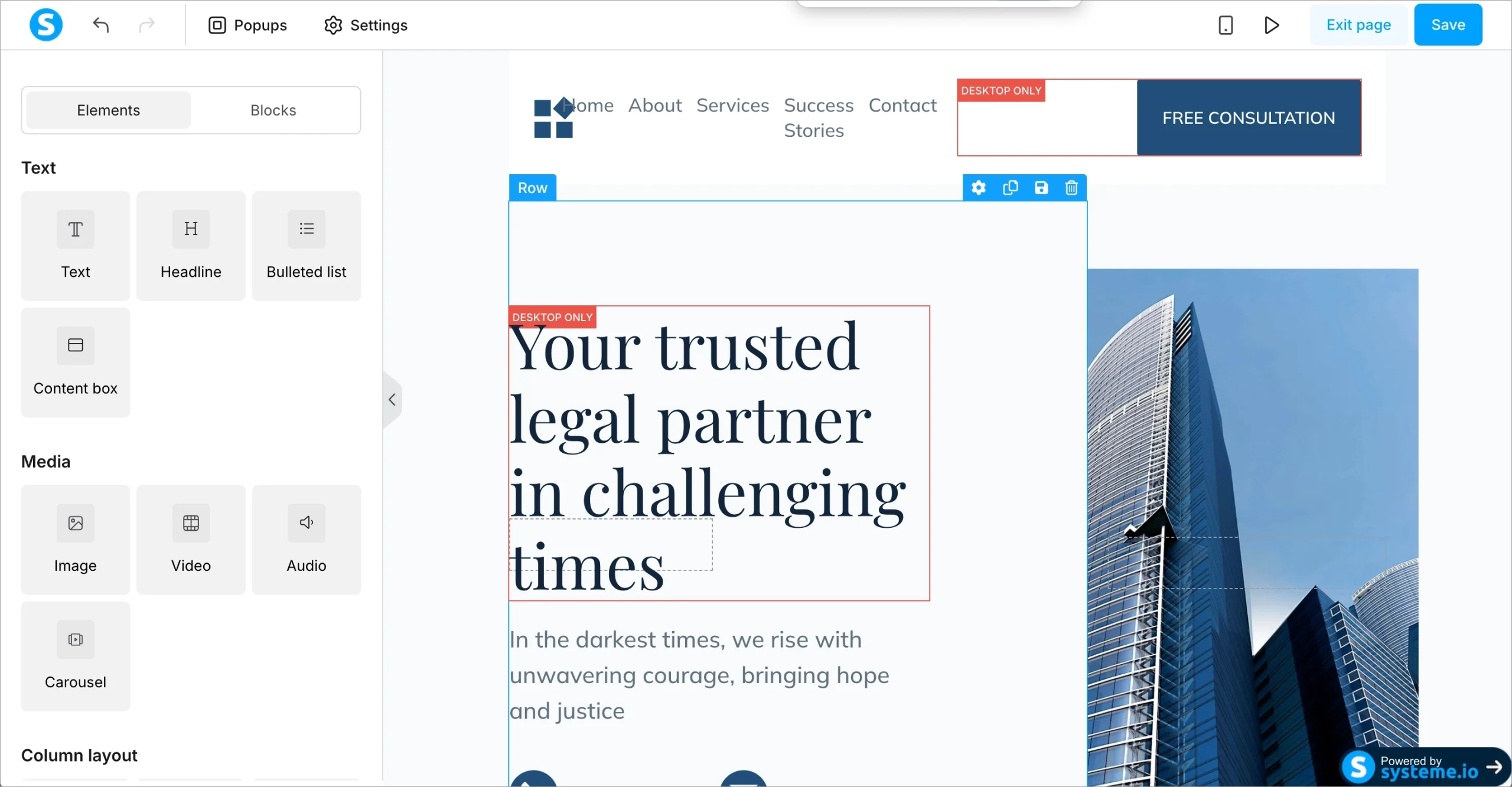 Chaque outil produit des pages adaptées aux mobiles, mais Landingi permet d’ajuster manuellement les éléments mobiles pour un rendu précis. Systeme.io vous permet de masquer/afficher des éléments par appareil, tandis que Heyflow optimise automatiquement pour le mobile-first mais limite le positionnement des éléments.