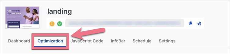 1. Go to Dashboard and access the Optimization tab for the landing page you are testing.