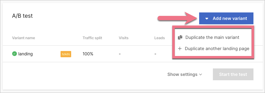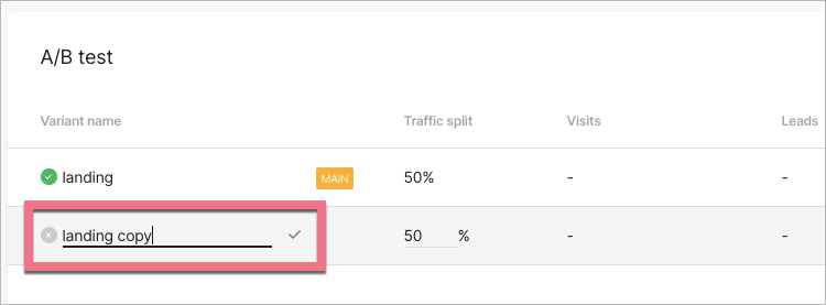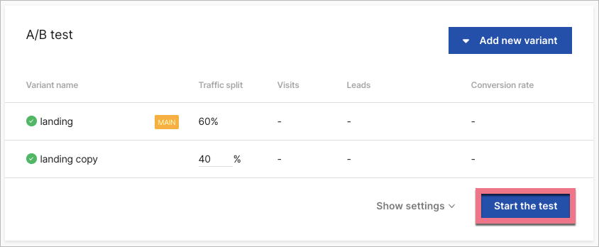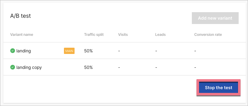 2. After the test, you can manually choose the winner from the tested variants and set it as the main variant. Such a landing page will display at the given URL when the test is not active.