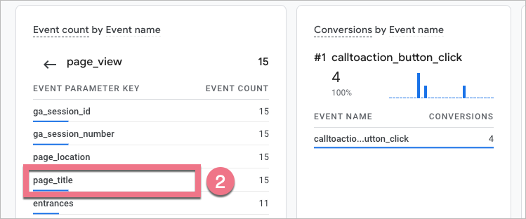 5. You will see the landing page variants titles in page_view events in your GA4 panel (Reports > Realtime > Event count).