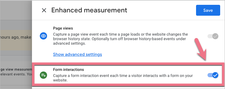 Make sure, that in the Enhanced measurement settings, the Form interactions option is enabled.