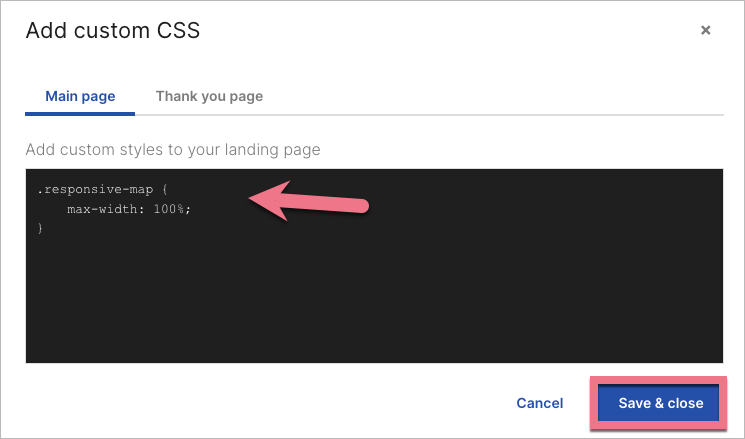5. Publish your landing page and check where the map is displayed on your landing page.