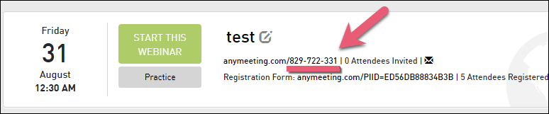 4. Copy the Webinar Code in the link to your webinar created in AnyMeeting.
