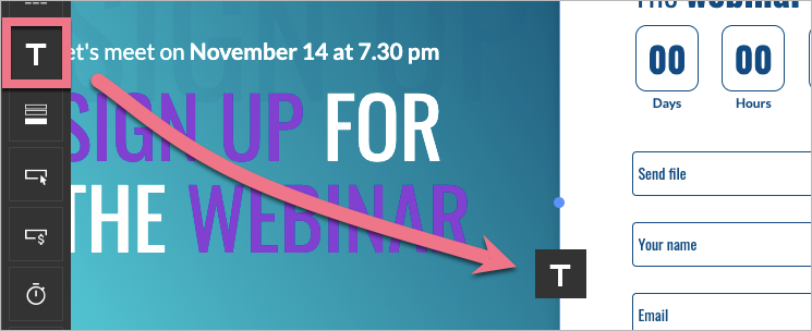 9. Add a Text widget and place it beneath the email field. Type an error message that will show when someone enters the email address you want to block.