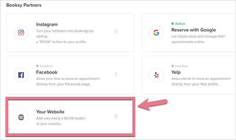4. In the Booksy Partners section, click Your Website.