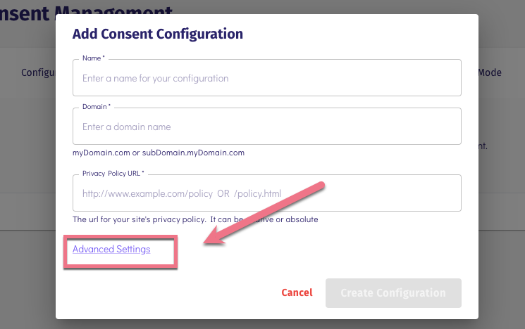 7. Scroll down and unfold Advanced Settings. Click Consent Settings.