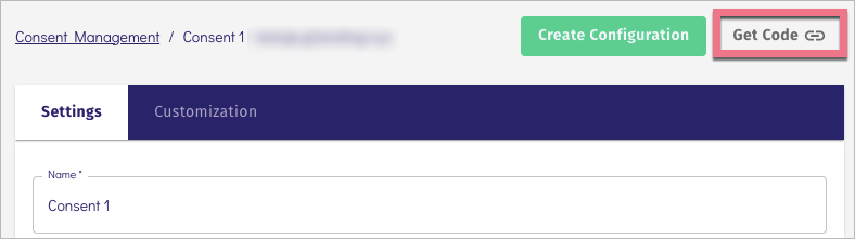 2. In the Consent Management tab, click + to add a new consent configuration.