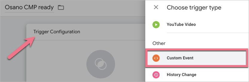 11. Name the trigger. In its configuration, choose Custom Event as a trigger type.