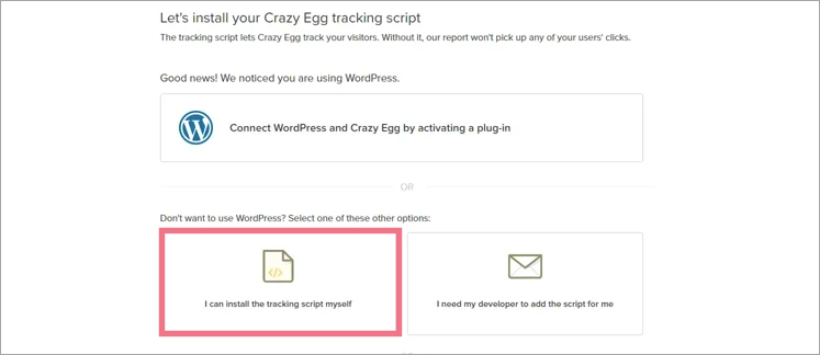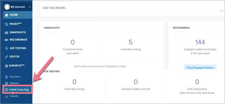 2. In the left sidebar, at the bottom, select Install Crazy Egg.