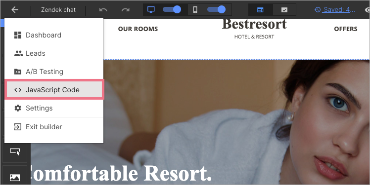 You can also access the JavaScript Code section directly from the editor of your landing page.