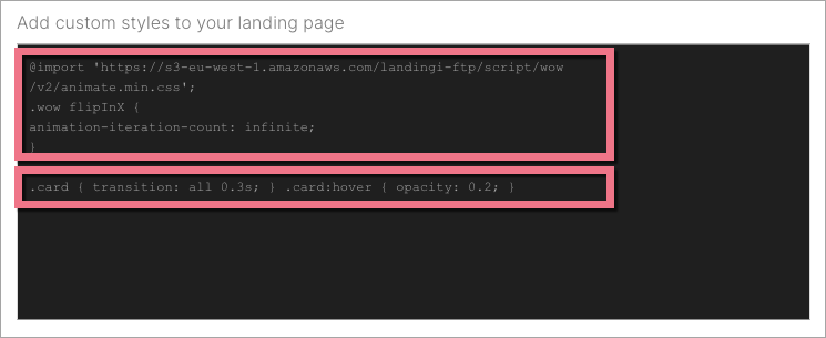 In Landingi, you can add your own HTML (incl. iframe tags), CSS, and JavaScript codes to create custom actions and visuals for your landing pages and extend their functionality.