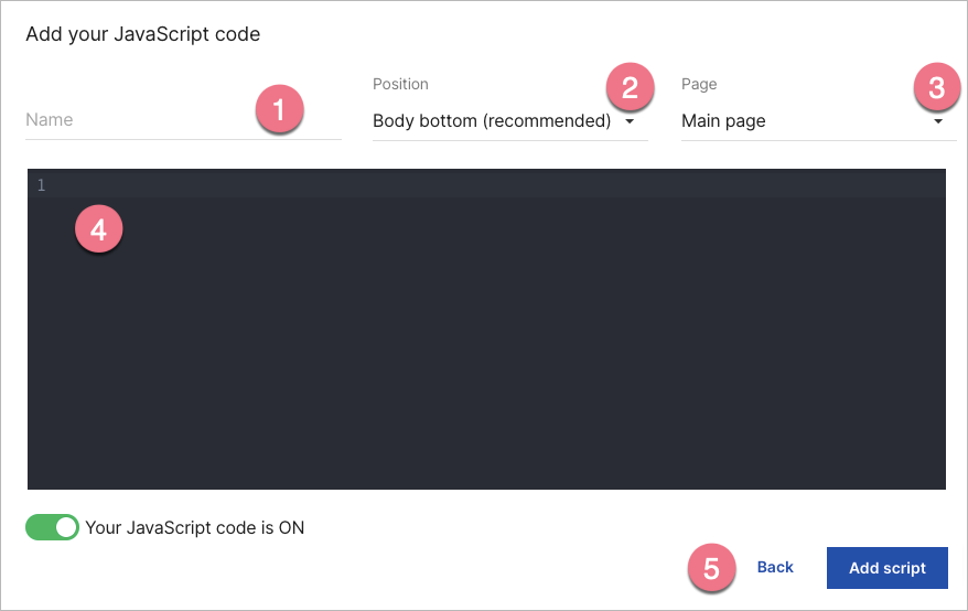 5. Once created, you can edit a script, temporarily disable or permanently delete it. To do this, go to the JavaScript Code tab and choose one of the actions: