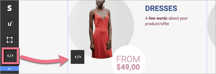 - TIP: All your products need more space than one product – increase the HTML widget’s width to avoid squeezing them.