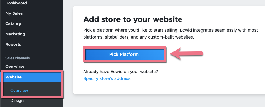 1. Navigate to the Website tab and Overview. Then click Pick Platform.