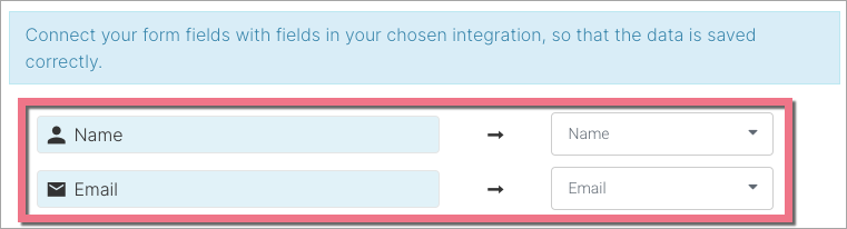 5. Next, connect the form fields with the appropriate values defined in E-goi.