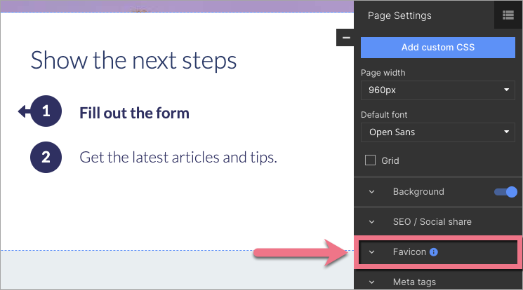 By default, a favicon of your landing page in Landingi is the Landingi logo. You can change it and add your individual favicon for each landing page.