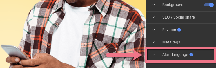 3. Find the Alert language tab and unfold it.