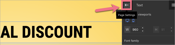 When editing, you can go back to Page Settings by clicking on the arrow:
