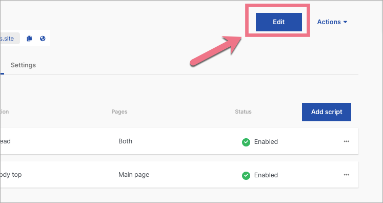 3. Go to Landingi and click Add script to install the second snippet.
