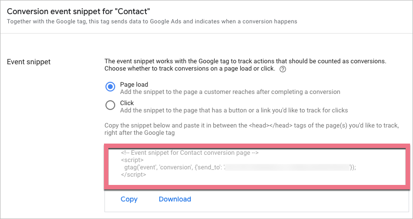 1. Go back to Google Ads. Scroll down to see your event snippet.