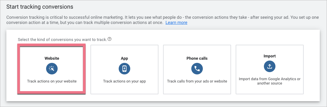 Create a conversion action and get your tracking tags