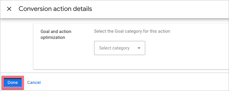 5. Go back to the Google Ads setup section and click Done. Now you can track conversions.