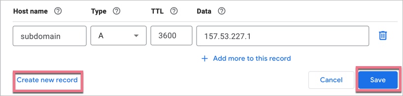 1. Add an A record for the subdomain you want to add to Landingi. If you already have such a record, edit it.