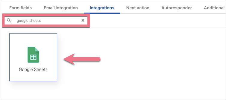 3. In the Integrations tab, choose Google Sheets. You can use the search bar to look for the integration. Type the name and press enter.