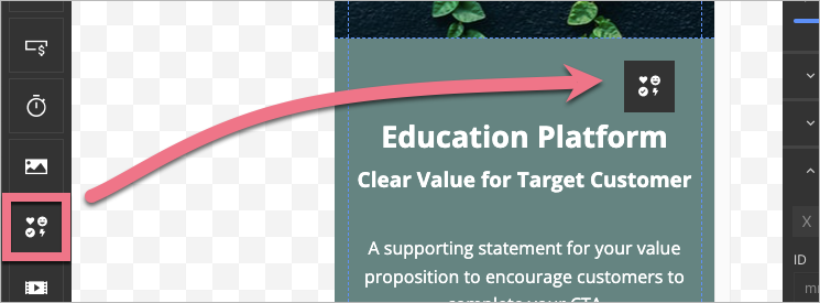 3. Add an icon to this section – drag and drop the icon widget to the chosen place.
