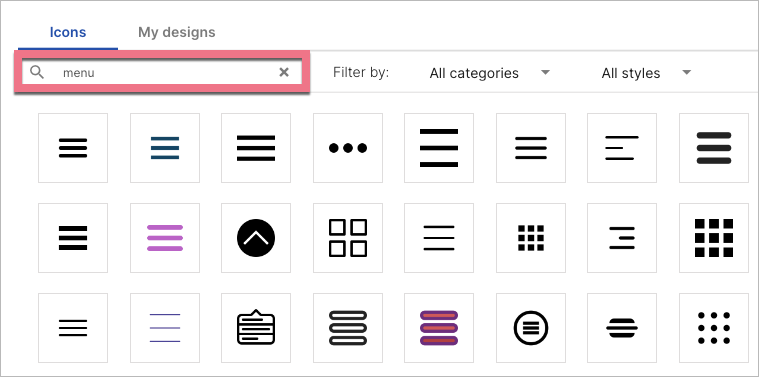4. Search for menu and select your icon (or choose any other icon).