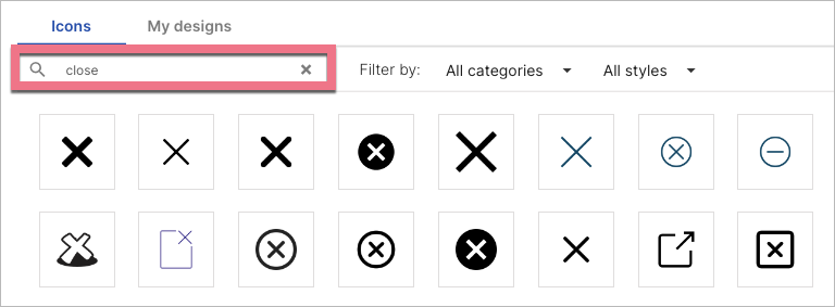 This time, look for a closing icon (e.g., you can search for close).
