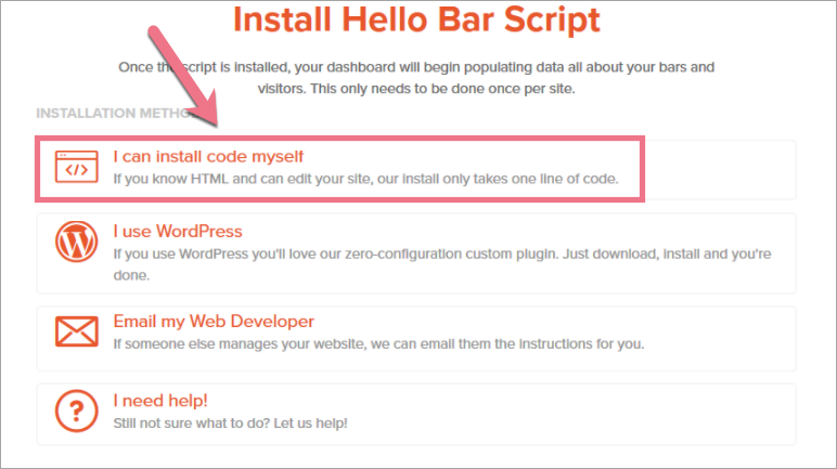 1. Log into your Hello Bar Dashboard. The code can be found in two different ways:
