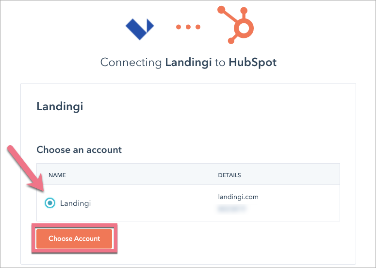 5. In a pop-up window, log in to your HubSpot account, choose which account you want to connect with your form, and click Choose Account. If you do not see the new window, check if your browser allows pop-ups.