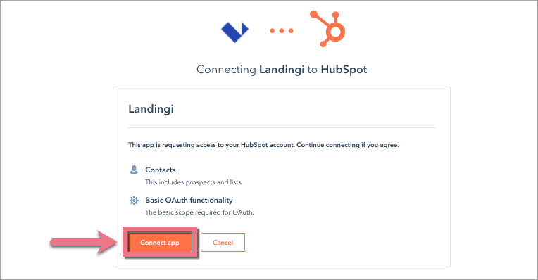 The HubSpot OAuth integration lets you integrate with a few clicks.