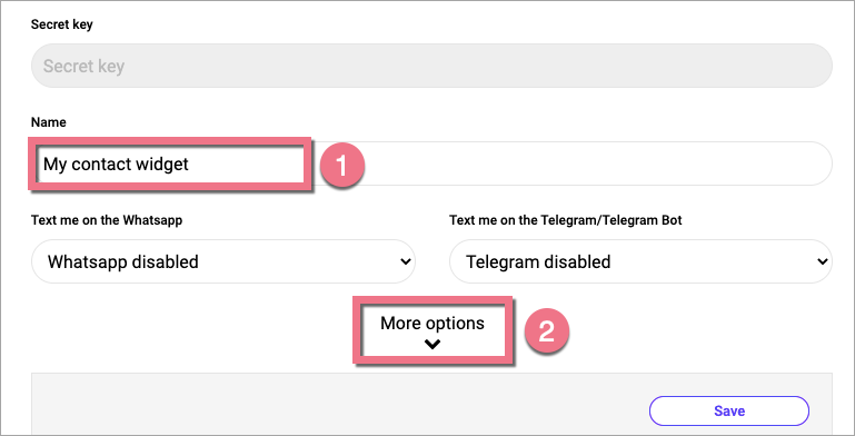 5. Name (1) your chat widget and click More options (2).