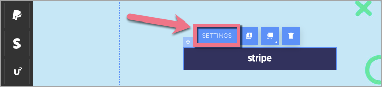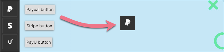 1. To add a payment integration, find your integration on the left side of the editor: PayU, PayPal, or Stripe. Choose one of them, then drag and drop it into the active area of your landing page.