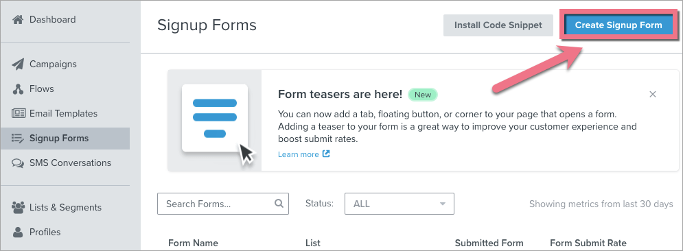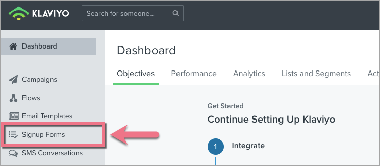 2. Navigate to the Signup Forms tab.