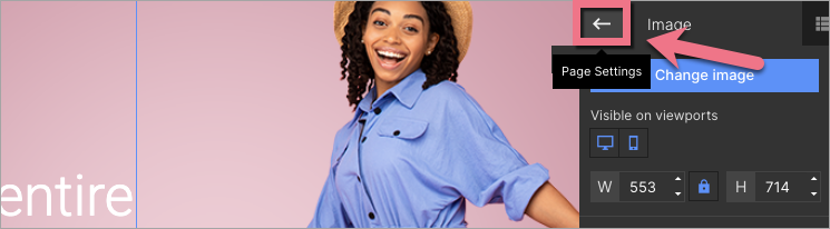 When editing, you can go back to Page Settings by clicking on the arrow: