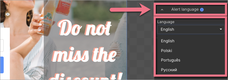 You can choose an alert messages language for your lightbox form. Alert messages are displayed when users enter invalid data in the form.
