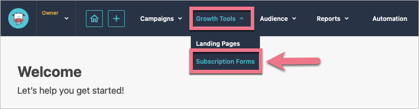 3. Once your domain is verified, click on the Growth Tools tab and select Subscription Forms.